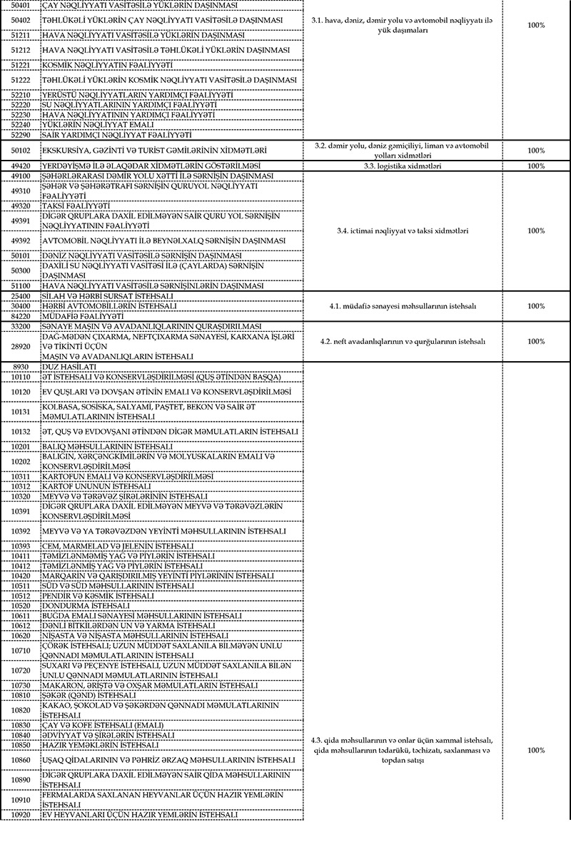 İcazə almaq üçün fəaliyyət növünüzün (5 rəqəmli kodunun) Azərbaycan Respublikasının Nazirlər Kabineti tərəfindən fəaliyyətinə icazə verilən sahələrə uyğunluğunu yoxlamalasınız (fəaliyyət sahələri və kodları əlavə olunur).