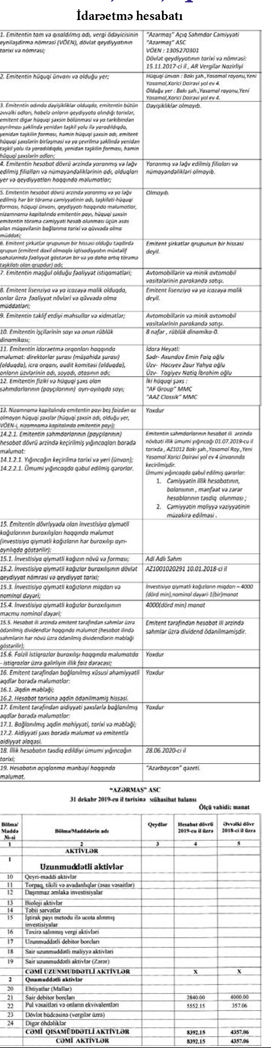 “Azərmaş” maliyyə vəziyyətini açıqladı