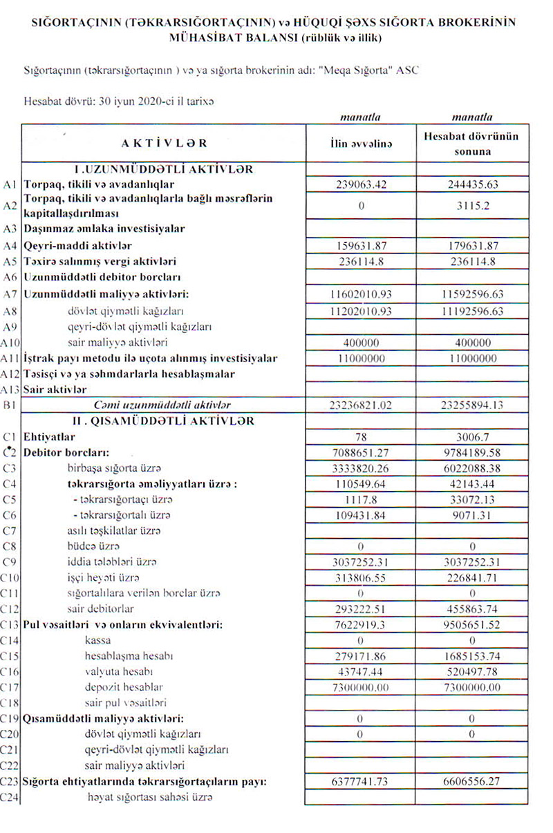 Marja “Meqa Sığorta”nın yarımillik maliyyə hesabatlarına istinadən xəbər verir ki, cari ilin yanvar-iyun dövründə cəmi gəlirlər 11 milyon 970 min manat, cəmi xərclər isə 8 milyon 682 min manat təşkil edib. Şirkət 3 milyon 288 min manat əməliyyat mənfəətindən 657 min 631 min manat mənfəət vergisi ödəyib.