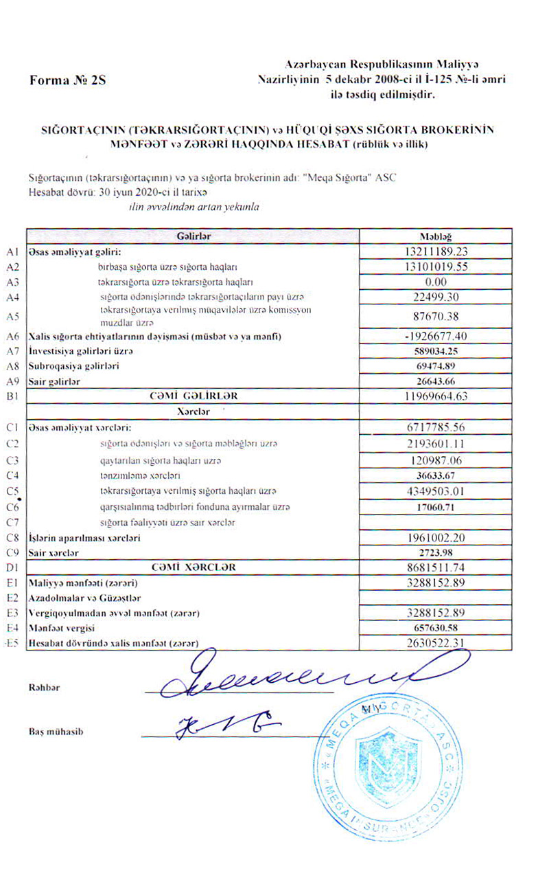 Müqayisə üçün qeyd edək ki, 2019-cu ilin yanvar-iyun dövründə “Meqa Sığorta”nın cəmi gəlirləri 12 milyon 303 min manat, cəmi xərcləri 9 milyon 449 min manat, əməliyyat mənfəəti 2 milyon 854 min manat təşkil etmişdi.