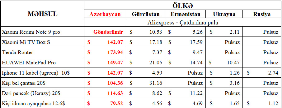 "Bilidyiniz kimi qloballaşan dünyada onlayn alış-veriş günü gündən artmaqdadır. Eləcə də "Aliexpress" və ona bənzər səhifələrdən alınan məhsullar ölkə bazarında olan məhsulların qiymətinin formalaşmasında öz rolunu oynayır və inkişaf, istehlakçı hüquqlarının bərqərar olması, inhisarçılığın formalaşmaması məsələlərində önəmli təsirə malikdir. Son zamanlar fikir versəniz "Aliexpress"dən alınan məhsulların çatdırılma pulu elə astranomik vəziyyətə gəlib çatıb ki, faktiki olaraq alış-veriş etmək mümkün deyil. Məsələn 10 manat ekvivalentində bir məhsul almaq istədikdə 200 manatdan yuxarı çatdırılma pulu təklif edilir. Satıcılar isə Azərbaycanın yalnız xüsusi (bahalı) çatdırılma vasitələrini qəbul etdiyini əsas gətirirlər. Bu isə bu alış-veriş səhifələrinin faktiki olaraq bloklanması deməkdir. Aliexpress satıcılarının verdiyi məlumata görə, Azərbaycan yalnız DHL, EMS kimi çatdırılma şirkətlərinin göndərişlərini qəbul edir".