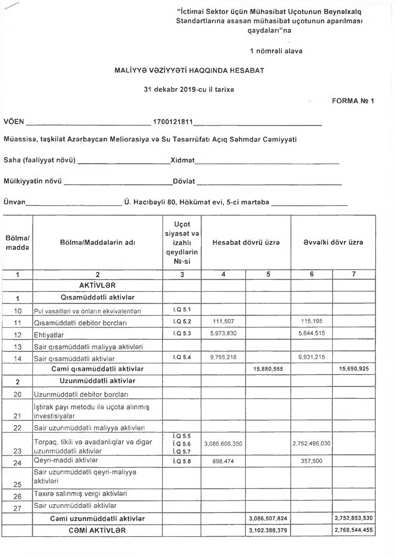 Bu il yanvarın 1-nə “Azərbaycan Meliorasiya və Su Təsərrüfatı”nın aktivləri 3 milyard 12 milyon 388 min manat olub ki, bu da 1 il əvvələ nisbətən 12,1% çoxdur.