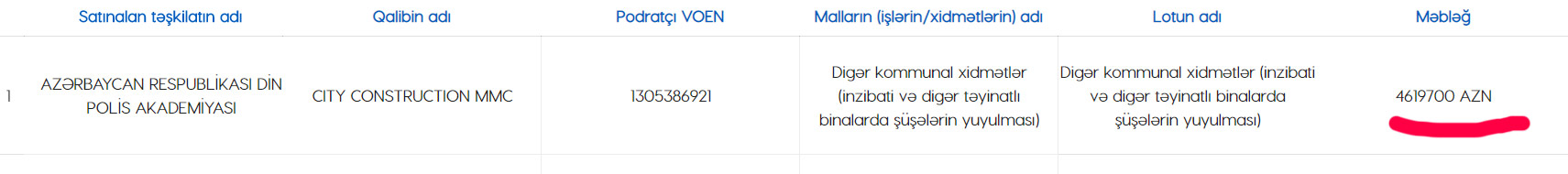 Polis Akademiyası qalib şirkət ilə məbləği 4 milyon 619 min 700 manat olan müqavilə bağlayıb.