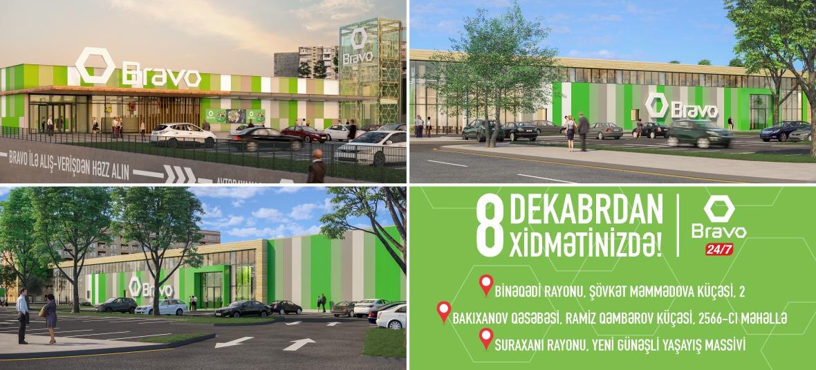 Dekabrın 17-də isə Yasamal rayonu, Xarici dairəvi yol 8 ünvanında (Zefir Mall-da) kiçik market formatında "Bravo" istifadəyə veriləcəkdir.