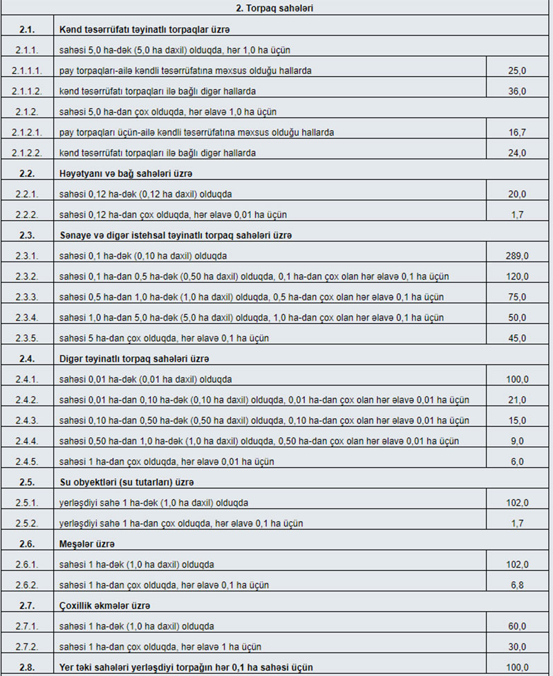 - kənd təsərrüfatı torpaqları ilə bağlı digər hallarda maksimum 175 AZN
