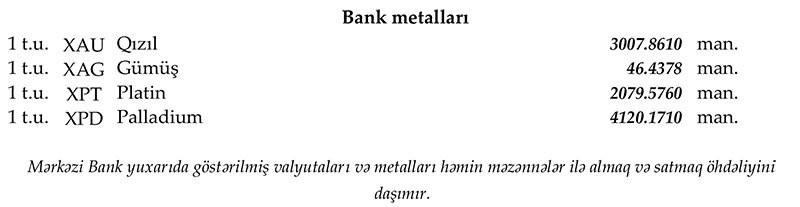 Rəsmi məzənnələr açıqlanıb