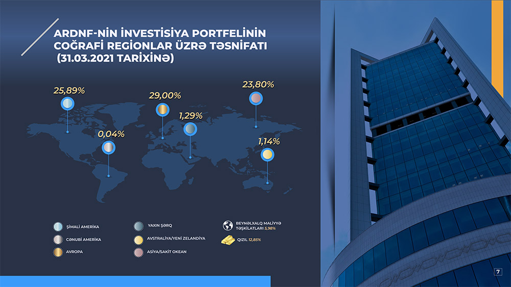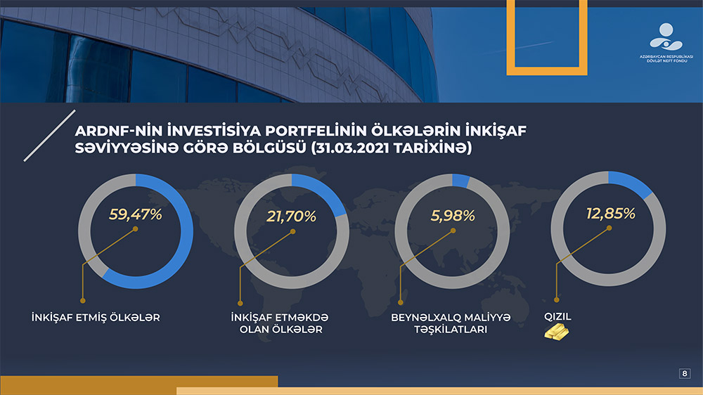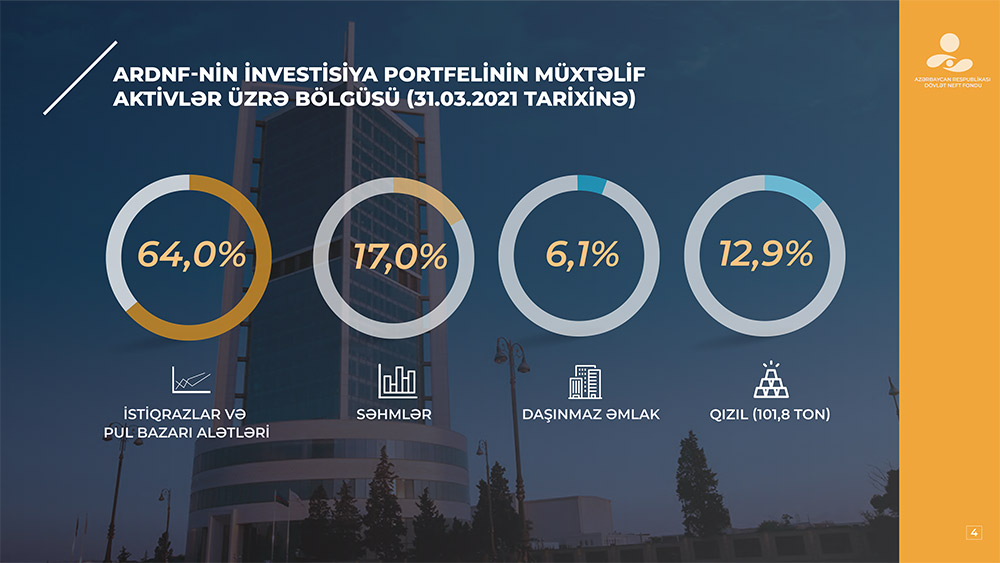 2021-ci ilin ilk rübündə Azərbaycan Respublikası Dövlət Neft Fondunun (ARDNF) investisiya portfelində qızılın miqdarı dəyişməyib.