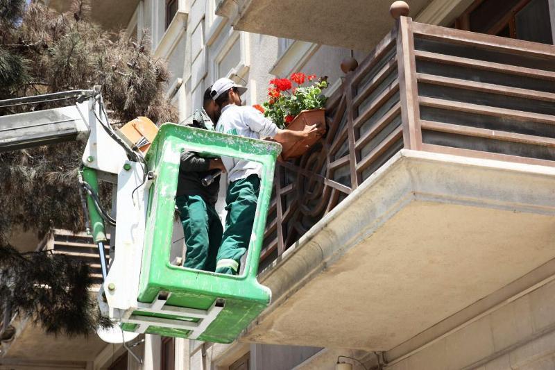 Bakı Şəhər və rayonların icra hakimiyyətləri tərəfindən paytaxtın rayonlarında küçə və prospektlər boyunca yerləşən yaşayış binalarının eyvanlarında müxtəlif güllərlə bəzədilmiş dibçəklər yerləşdirilir.