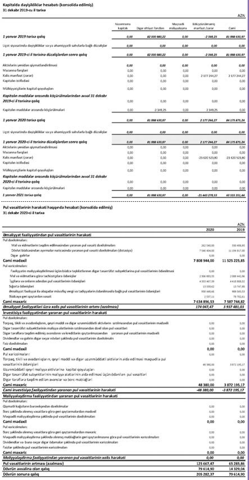 Həm gəlirlərin azalması, həm də asılı və ya birgə müəssisələrin zərərləri şirkətin böyük məbləğdə ziyana düşməsinə səbəb olub. Ötən il asılı və birgə müəssisələrin ziyanlarında pay 24 milyon 454 min manat təşkil edib (2019-da 803 min manat təşkil etmişdi).
