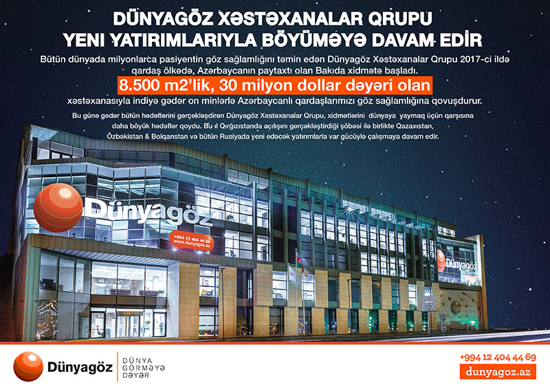 (®) Bütün dünyada milyonlarla pasiyentin göz sağlamlığını təmin edən Dünyagöz Xəstəxanalar Qrupu 2017-ci ildə qardaş ölkədə, Azərbaycanın paytaxtı olan Bakıda xidmətə başlayıb.