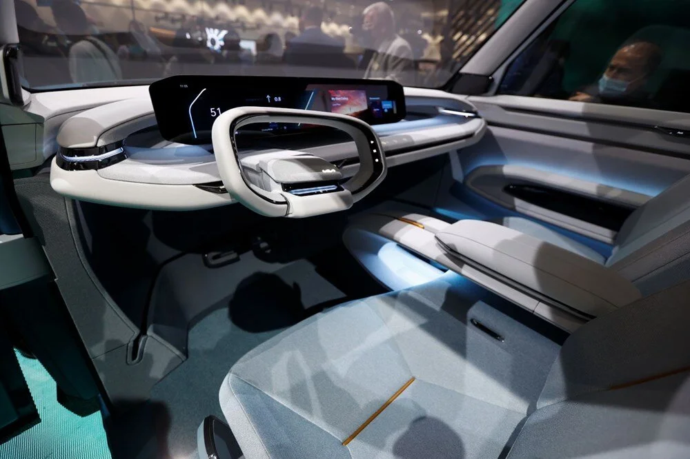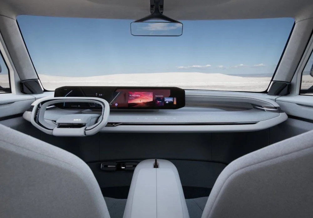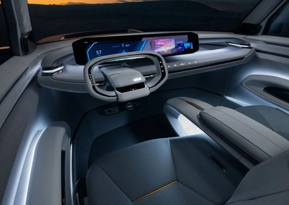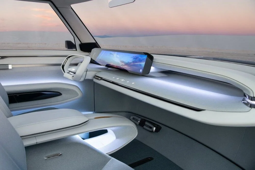Konsept avtomobilin salonu xaricindəki kimi kəskin xətlərdən ibarət deyil. Avtomobil 27 düymlük sürücü məlumat və multimedia displeyi ilə təchiz olunub.