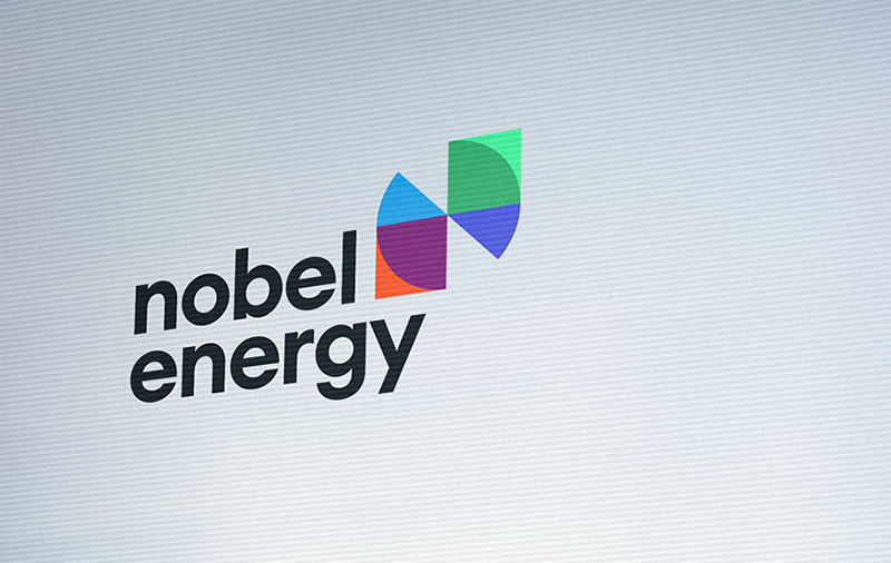 Nobel Energy-nin yeni loqosu enerji sektorunda davamlı inkişaf (bənövşəyi rəng ilə göstərilib) vasitəsilə karbohidrogenlərdən (narıncı rəng) daha təmiz enerjiyə (mavi rəng) keçidi təcəssüm etdirir. Hədəf bərpa olunan enerji mənbələridir (yaşıl rəng) ki, bu da innovasiyalarla (tünd göy rəngdə göstərilib) dəstəklənir.