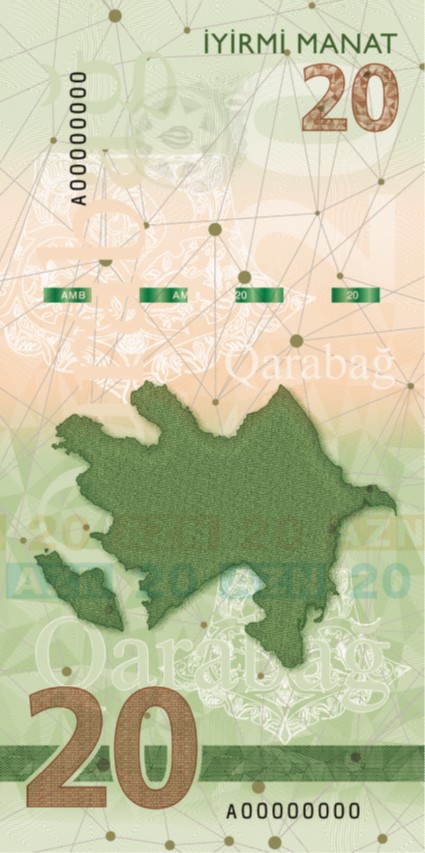 Azərbaycan Mərkəzi Bankı yenilənmiş dizayna və mütərəqqi mühafizə sistemlərinə malik 20 manatlıq pul nişanının 10 fevral 2022-ci il tarixdən tədavülə buraxılmasını elan edir.