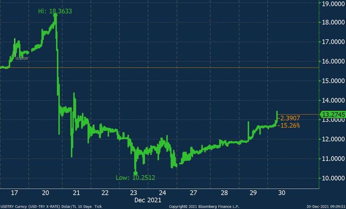 Türk lirəsi həftənin əvvəlindən bu yana dollar qarşısında ən çox dəyər itirən inkişaf edəni ölkə pul vahididir.