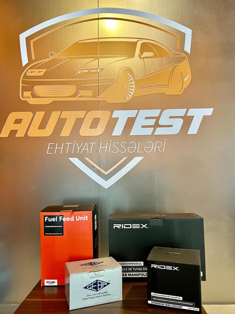 Şirkətimiz əsasən VAG avtomobilləri üzrə (Porsche, Audi, Seat, Volkswagen, Skoda) ixtisaslaşıb. Bundan əlavə bir çox avtomobil modelləri üçün ehtiyyat hissələri təqdim edirik. “AutoTest” hal-hazırda “RIDEX”, “GEBA”, “STARK” şirkətlərinin rəsmi dileridir. Gələn aydan artıq “BORSEHUNG” məhsulları da satışda olacaq. Maraqlananlar üçün onu da qeyd etmək lazımdır ki, “RIDEX” firmasından daha çox avtomobil markaları üçün ehtiyat hissələri mövcuddur. Məsələn, VAG avtomobillərindən əlavə Toyota, Lexus, Kia, Hyundai avtomobilləri üçün ehtiyyat hissələrini əldə etmək mümkündür. “GEBA” sırf alman avtomobilləri üçün pompa və termostat istehsalı ilə məşğuldur. STARK brendinin adı altında da Alman, Yapon və Koreya avtomobilləri üçün olan hissələri əldə edə bilərlər.