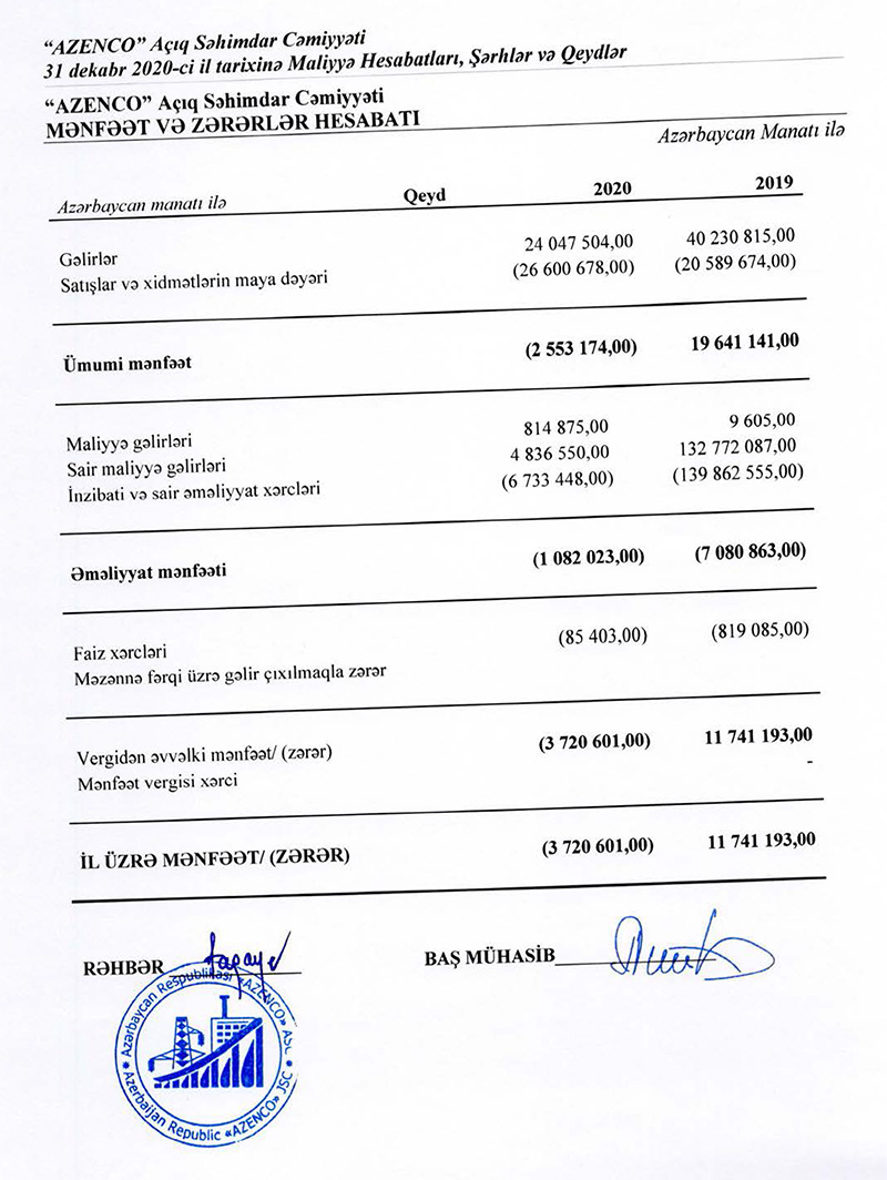 Energetika obyektlərinin təmir-tikintisi ilə məşğul olan “Azenko” ASC 2020-ci ili 3 milyon 721 min manat xalis zərər ilə başa vurub. Halbuki, şirkət 2019-cu ili 11 milyon 741 min manat xalis mənfəət ilə bağlamışdı.
