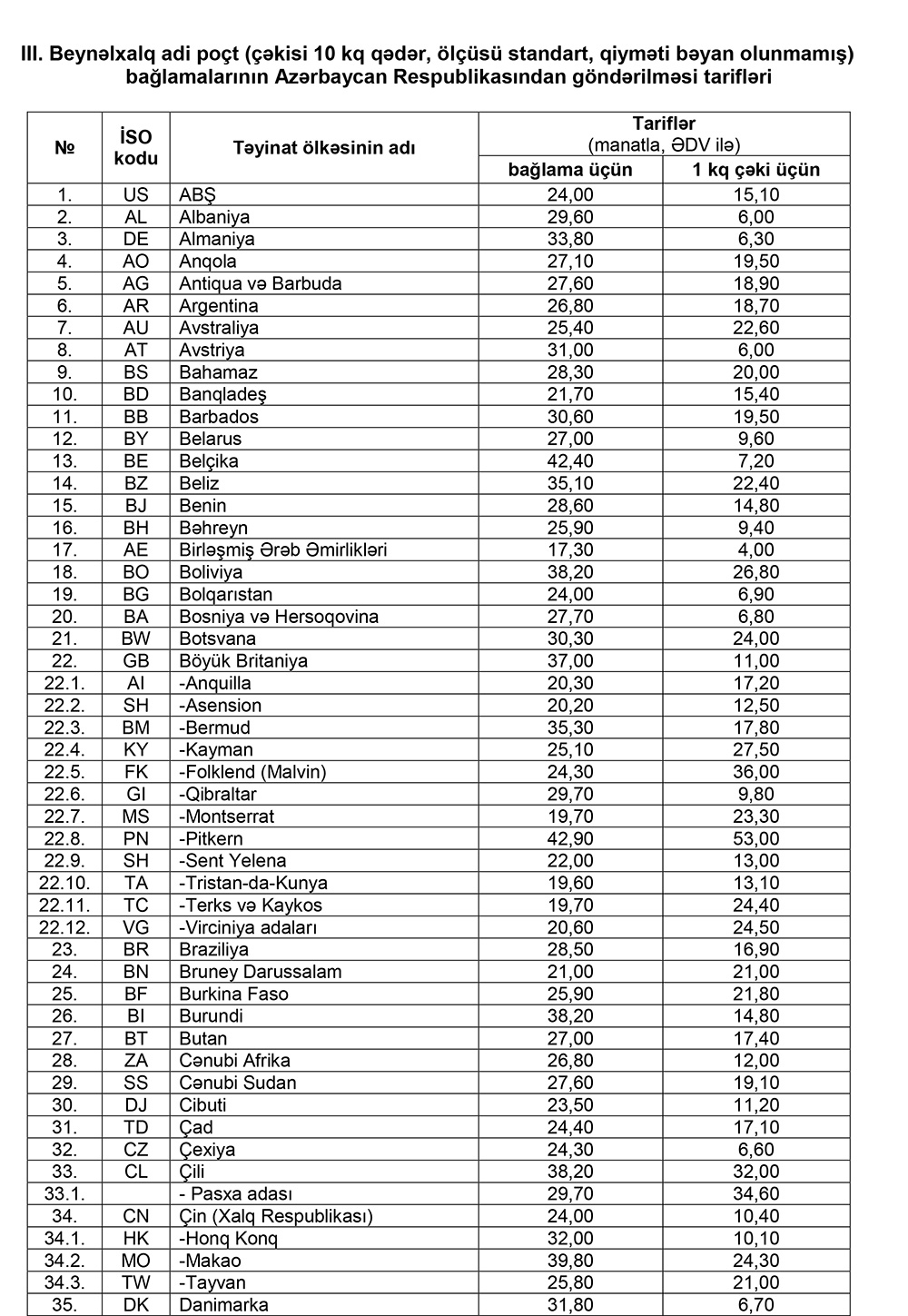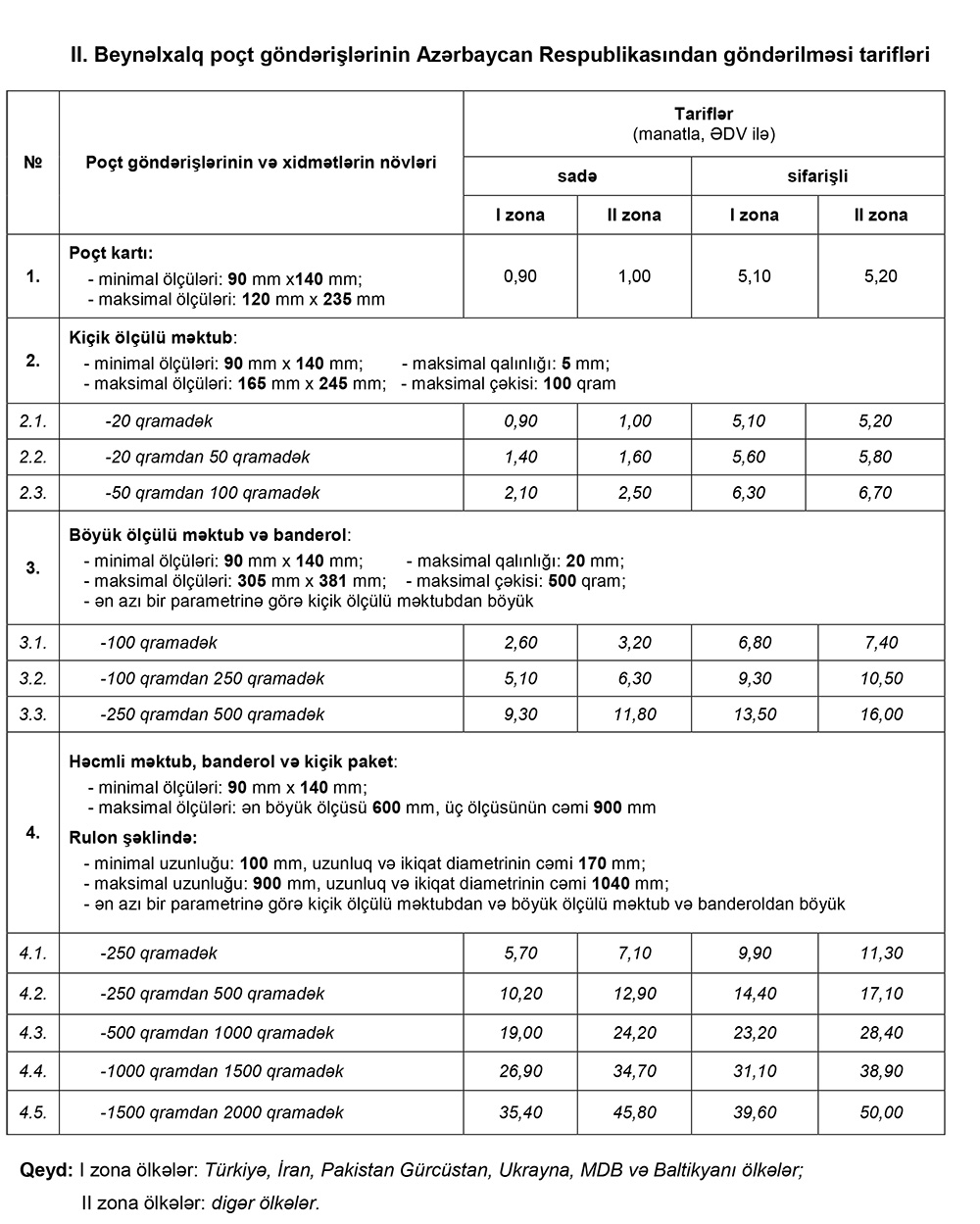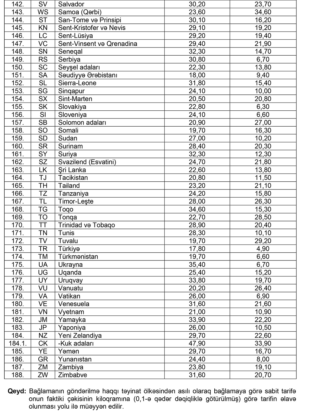 Təklif olunan tariflər digər poçt operatorlarının tarifi ilə müqayisədə aşağı olmaqla yanaşı, xidmətlə bağlı xərcləri qarşılayacaq.