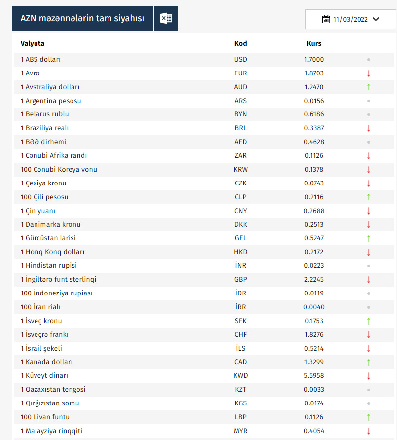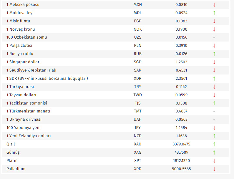 Rəsmi məzənnələr açıqlandı