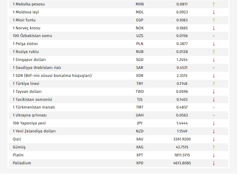 Dolların bazar ertəsi üçün rəsmi məzənnəsi müəyyən olunub