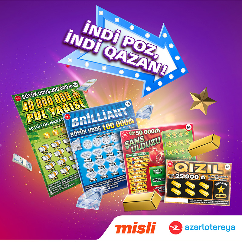 “40 000 000 Pul Yağışı” ani lotereyası, eləcə də “Azərlotereya” ASC-nin digər ani lotereyaları “Brilliant”, “Şans ulduzu”, “Qızıl” biletlərini bütün “Misli” məntəqələri və lotereya satış nöqtələri, “Azərpoçt” şöbələri, “Maxi.az” və “Optimal Elektronika” mağazalar şəbəkəsində əldə edə bilərsiniz.