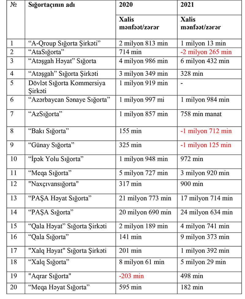 Marja.az-ın araşdırmasına görə, 2021-ci ili, maliyyə hesabatlarını dərc etmiş 19 şirkətdən 16-sı xalis mənfəətlə, 3-ü xalis zərər ilə başa vurub.