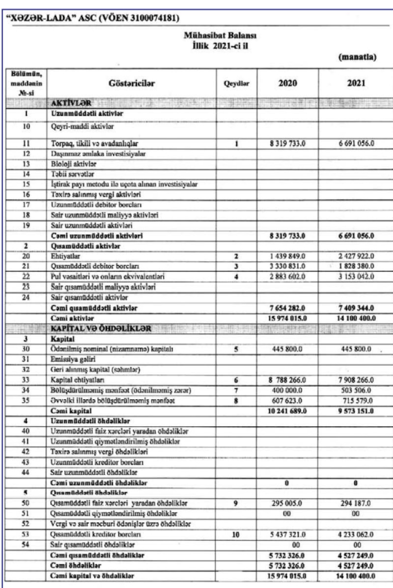 Rusiyanın "AvtoVaz" şirkətinin Azərbaycanda rəsmi tərəfdaşı "Xəzər Lada" ASC 2021-ci ili 504 min manat xalis mənfəət ilə başa vurub. Halbuki, Şirkət 2020-ci ili 389 min manat xalis mənfəət ilə bağlamışdı.