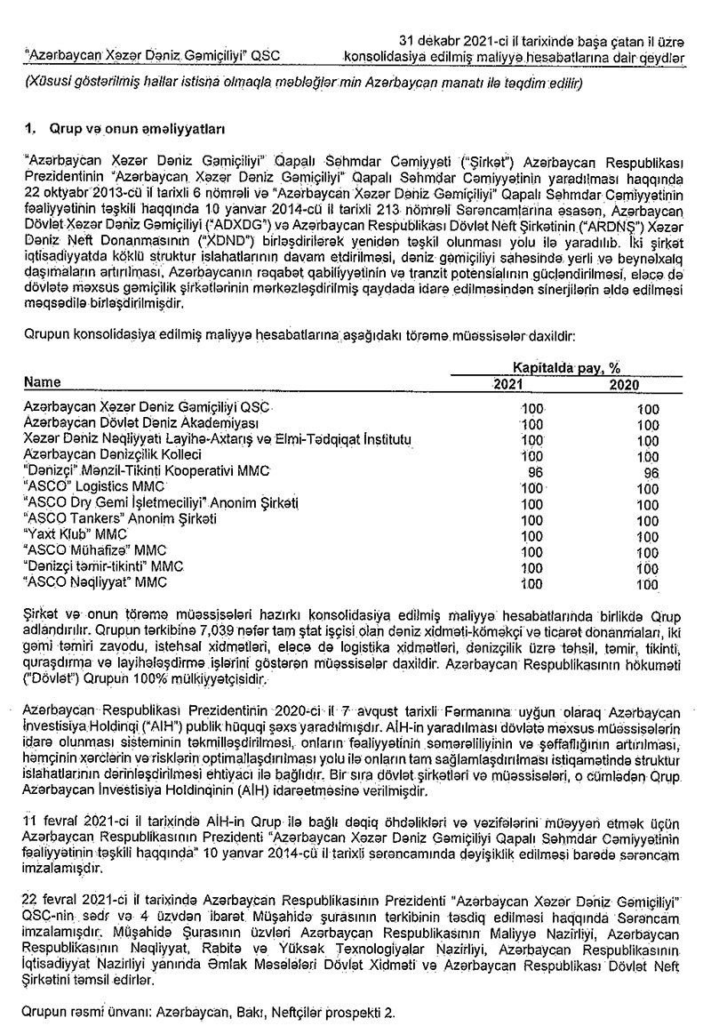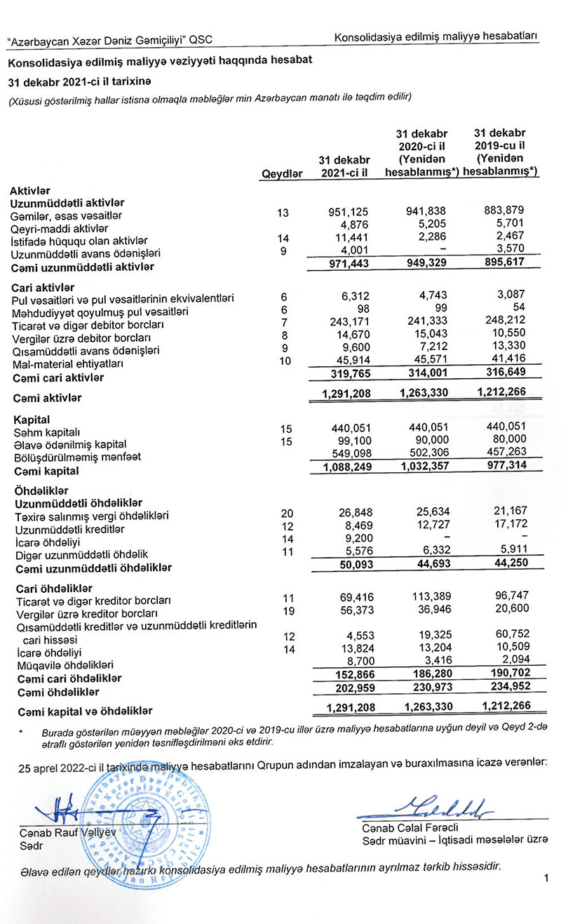 Dövlətə məxsus "Azərbaycan Xəzər Dəniz Gəmiçiliyi" QSC 2021-ci ili 51 milyon 792 min manat xalis mənfəət ilə başa vurub. Halbuki, QSC 2020-ci ili 45 milyon 43 min manat xalis mənfəət ilə bağlamışdı. Beləliklə, dövlət şirkətinin xalis mənfəəti 2020-ci illə müqayisədə 2021-ci ildə 6 milyon 749 min manat və ya 15% artıb.