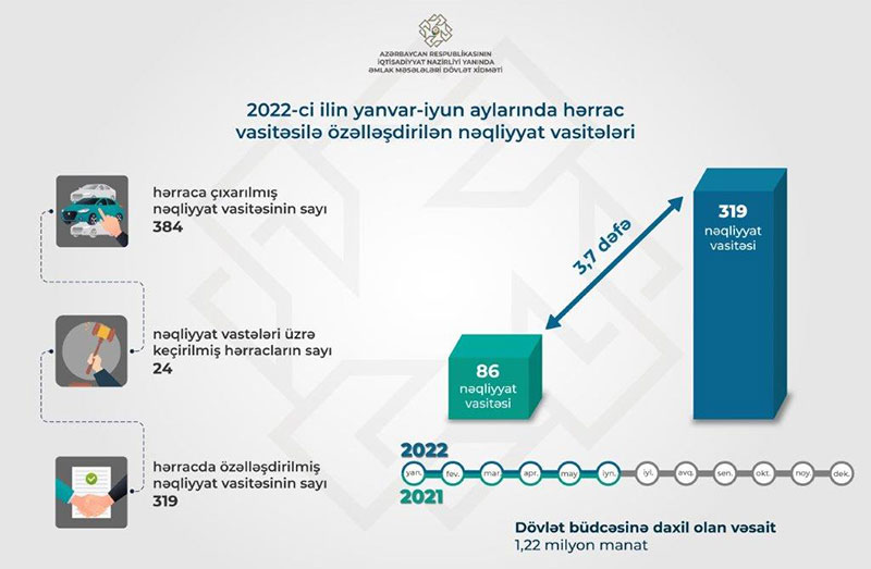İqtisadiyyat Nazirliyi yanında Əmlak Məsələləri Dövlət Xidməti tərəfindən hərraclar vasitəsilə dövlət əmlakının özəlləşdirilməsi ilə bağlı işlər davam etdirilir. Digər dövlət əmlakları ilə yanaşı, hərraclarda nəqliyyat vasitələrinin də satışı həyata keçirilir.