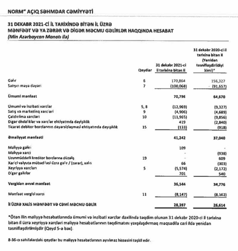 2021-ci ildə "Norm" şirkətinin satışdan gəlirləri 170 milyon 864 min manat, xalis mənfəəti 28 milyon 397 min manat təşkil edib. Ötən il "Holcim Azərbaycan" şirkətinin satışdan gəlirləri 114 milyon 996 min manat, xalis mənfəəti isə 3 milyon 124 min manat olub. "Holcim Azərbaycan" "Norm" ilə müqayisədə 9 dəfə az xalis mənfəət əldə edib.