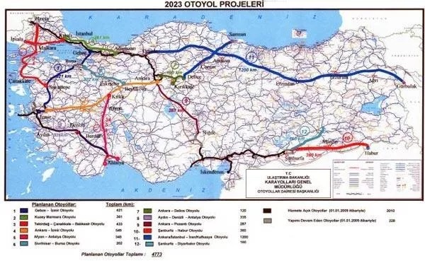 Türkiyə xəritəsinə daha geniş kontekstdə baxsaq, İstanbul-İzmir və İstanbul-Gerede-Mersin-Şanlıurfa marşrutu üzərində iki böyük magistral yol var. Ancaq Qara dənizi və Şərqi, hətta İpək Yolu layihəsini əhatə edən magistral yoxdur.