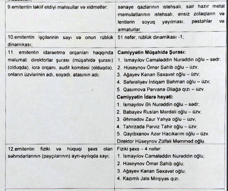 Son nəticədə C.İsmayılovun payı 68,7%-ə düşüb. Səhmlərin qalan hissəsi isə əvvəlki qaydada Kənan Ağayevə (20,7%) və Ömər Hüseynova (10%) məxsusdur.