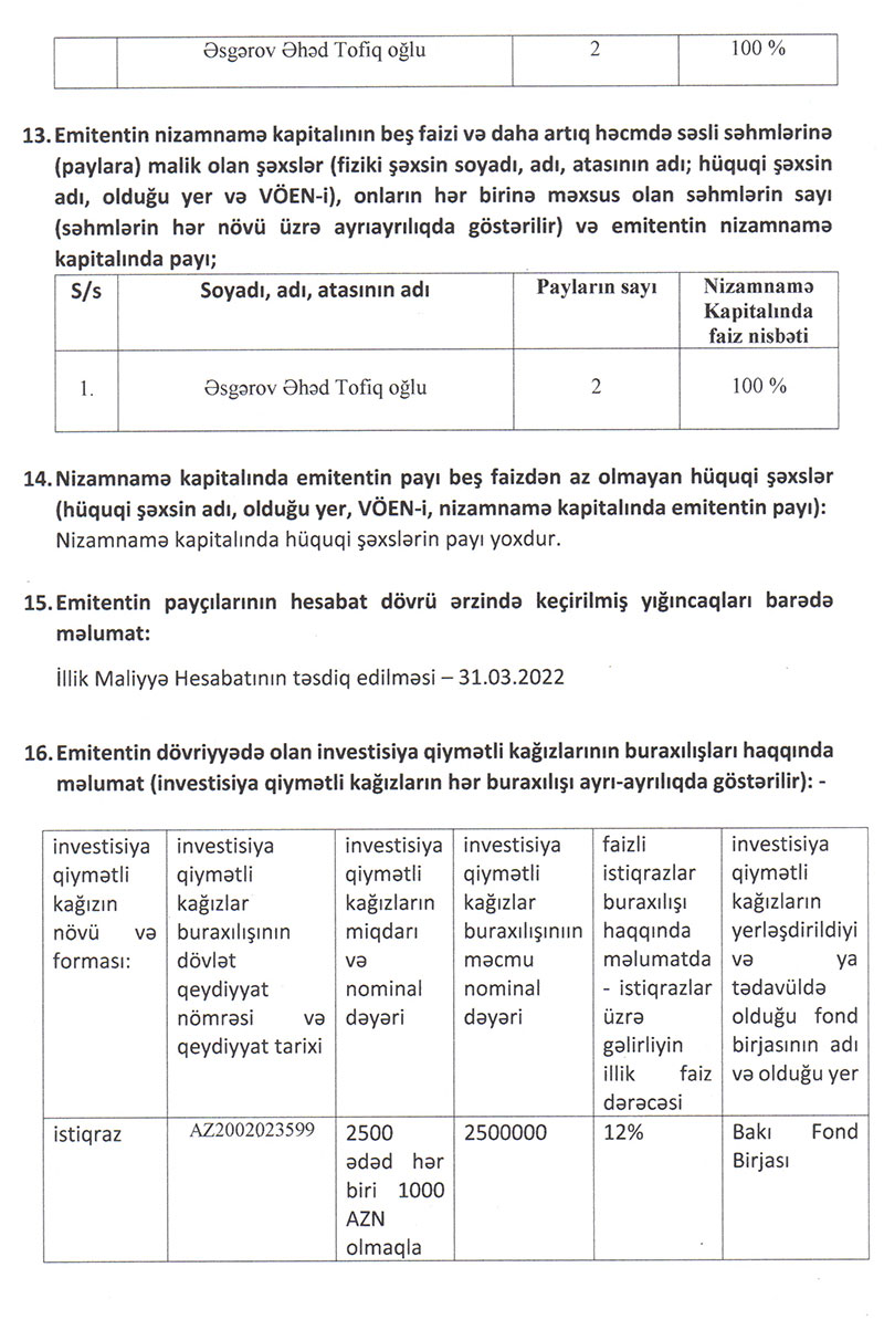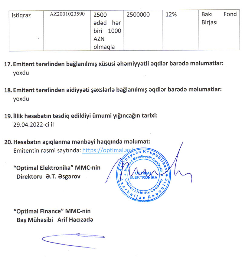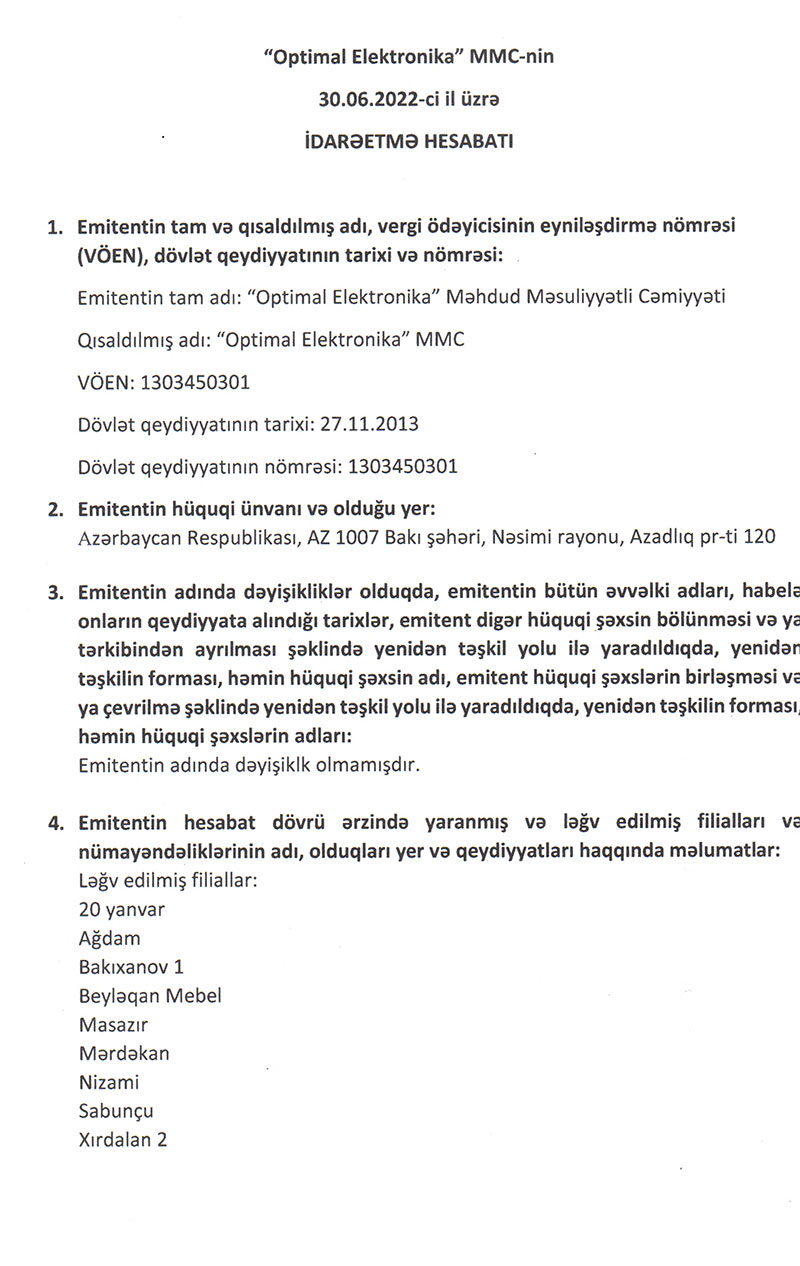 Qeyd edək ki, "Optimal Elektronika" MMC 100% Əsgərov Əhəd Tofiq oğluna məxsusdur.