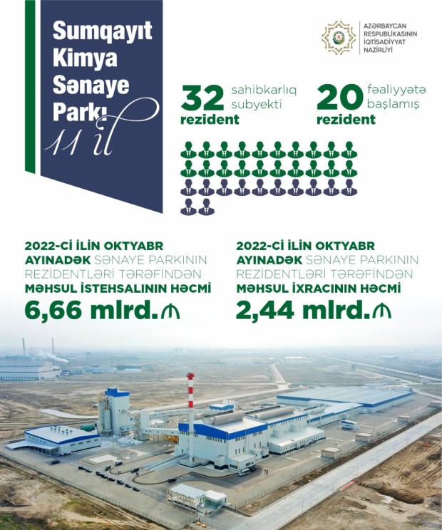 İndiyədək Sumqayıt Kimya Sənaye Parkı-nın rezidentləri tərəfindən 5,3 milyard manat investisiya yatırılıb və 6 000-dən çox insan daimi işlə təmin olunub.