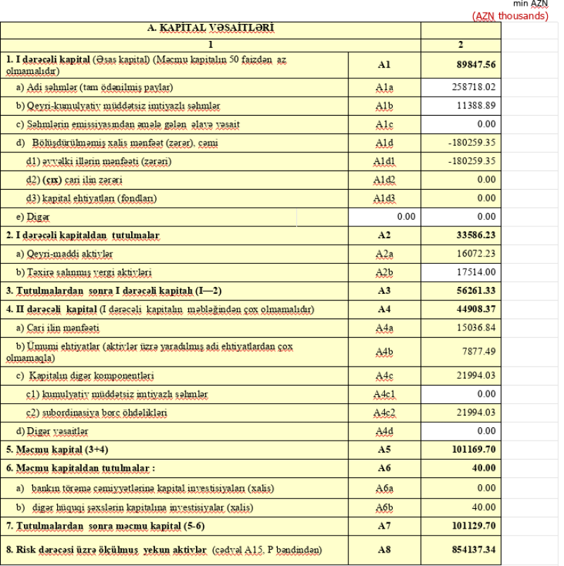-Bankın məcmu kapitalı son 1 il ərzində 27% və ya 21.5 milyon manat artaraq 101 milyon manatı ötüb. Bu da AMB-ın tələb etdiyi minimum normadan 2 dəfə artıqdır. Artım həm səhmdarların əlavə kapital inyeksiyası, həm də bankın qazandığı mənfəət hesabına mümkün olmuşdur. Belə ki, 2022-ci ilin noyabr ayında Bank mövcud səhmdarlarının yeni investisiyası hesabına kapital bazasını 11.4 milyon manat artırıb.