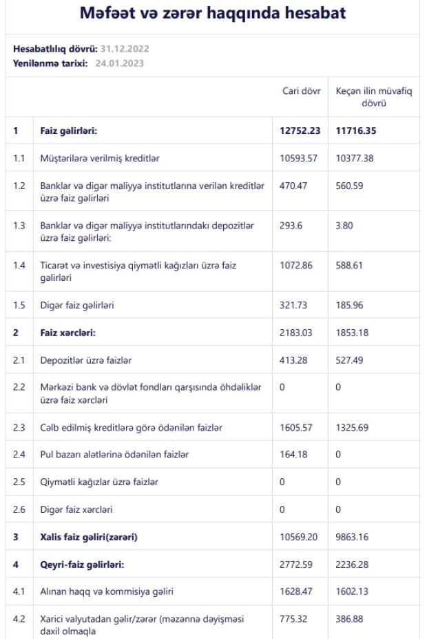 Bankın xalis mənfəəti 2 dəfədən çox artıb.
