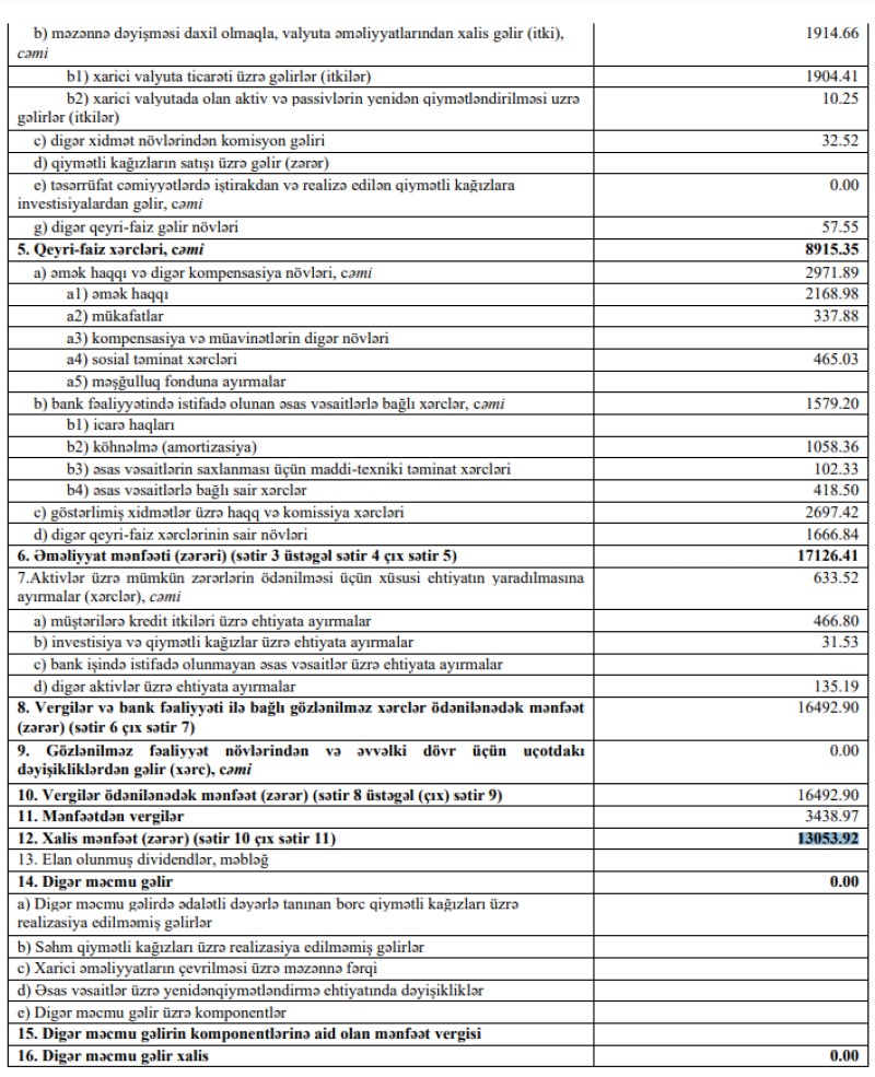 Ötən il "Naxçıvanbank"ın əməliyyat gəlirləri 8 milyon 694 min manat, əməliyyat xərcləri isə 3 milyon 50 min manat artıb.
