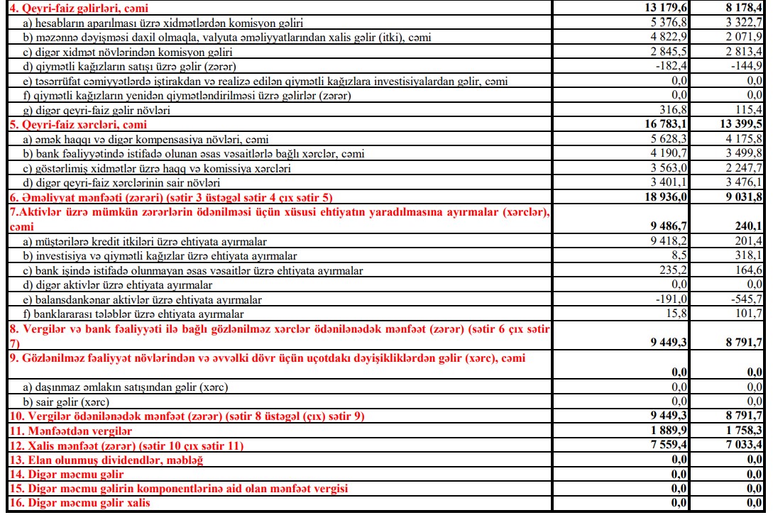 Ümumi olaraq hesabatlara əsasən bank 2022-ci il ərzində əsas maliyyə göstəriciləri üzrə illik fəaliyyətini uğurla tamamlamışdır.