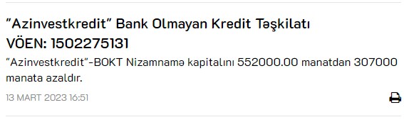 Yenidən icazə verildi - "FİNCA" borc alır: İLLİK 15%-LƏ 4 MİLYON MANAT PUL LAZIMDIR