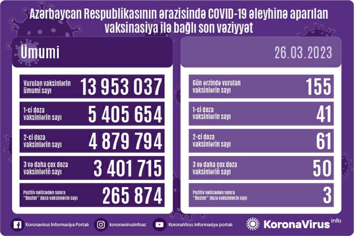Azərbaycanda son sutkada koronavirus (COVID-19) əleyhinə 155 vaksin vurulub.