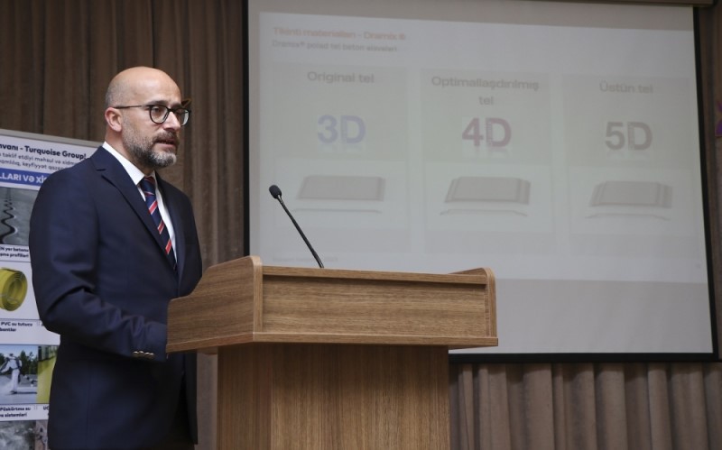 Çıxışlardan sonra istehsalatdan olan mütəxəssislərin “Yer betonu, döşəmə birləşmləri, keramika, qranit və mərmər örtükləri üçün dərz profilləri” və “Yer və yol betonlarında polad tellərin istifadəsi” mövzularında məruzələri dinlənilib.