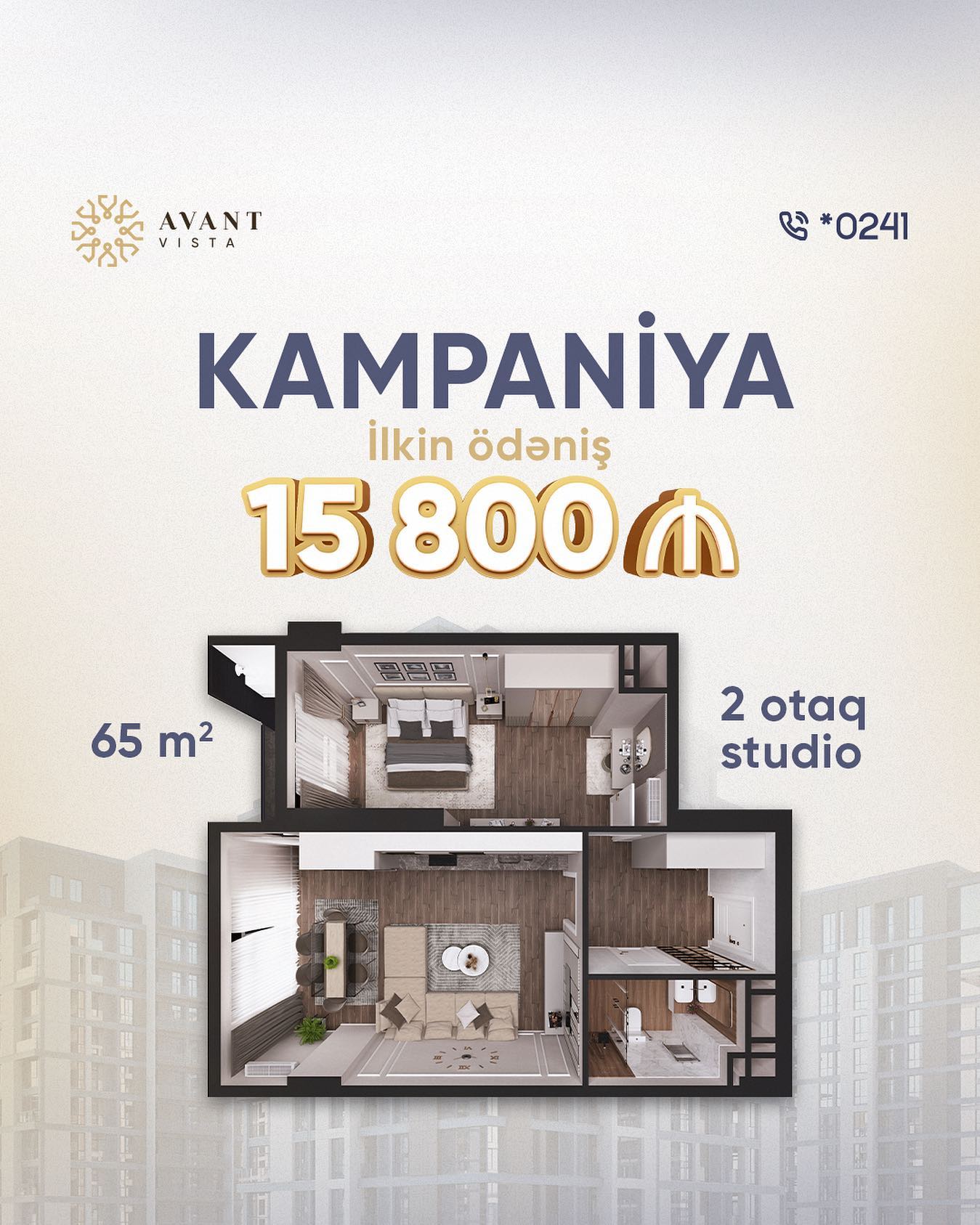 Yalnız indi 2 otaqlı 65 kv.m studio mənzilləri cəmi 15 800 manat ilkin ödəniş edərək əldə edə bilərsiniz.