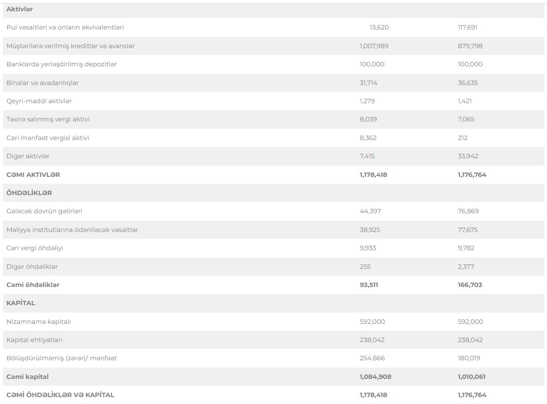 “Qafqaz-Kredit”in faiz gəlirləri və xalis mənfəəti azalıb