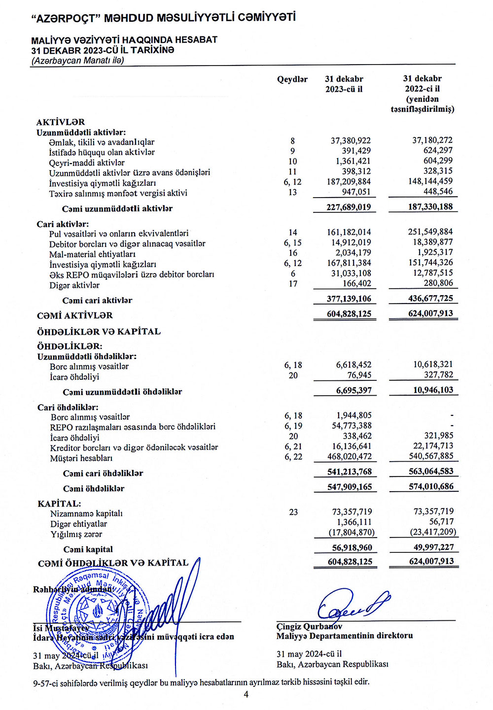 Ötən il "Azərpoçt" MMC-nin əməliyyat xərcləri əməliyyat gəlirlərini üstələdiyindən Şirkətin 13 milyon 337 min manat əməliyyat zərəri yaranıb (2022-ci ildə 662 min manat əməliyyat gəliri əldə etmişdi).