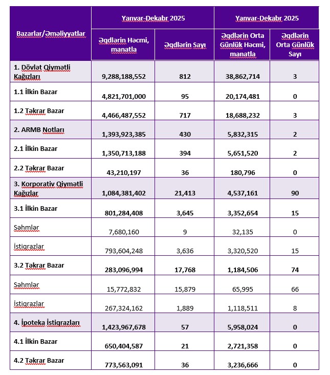 Ötən il Bakı Fond Birjasının ticarət dövriyyəsinin 50 milyard 633 milyon 099, min amantı və ya 79,3%-i REPO əməliyyatları üzrə olub.