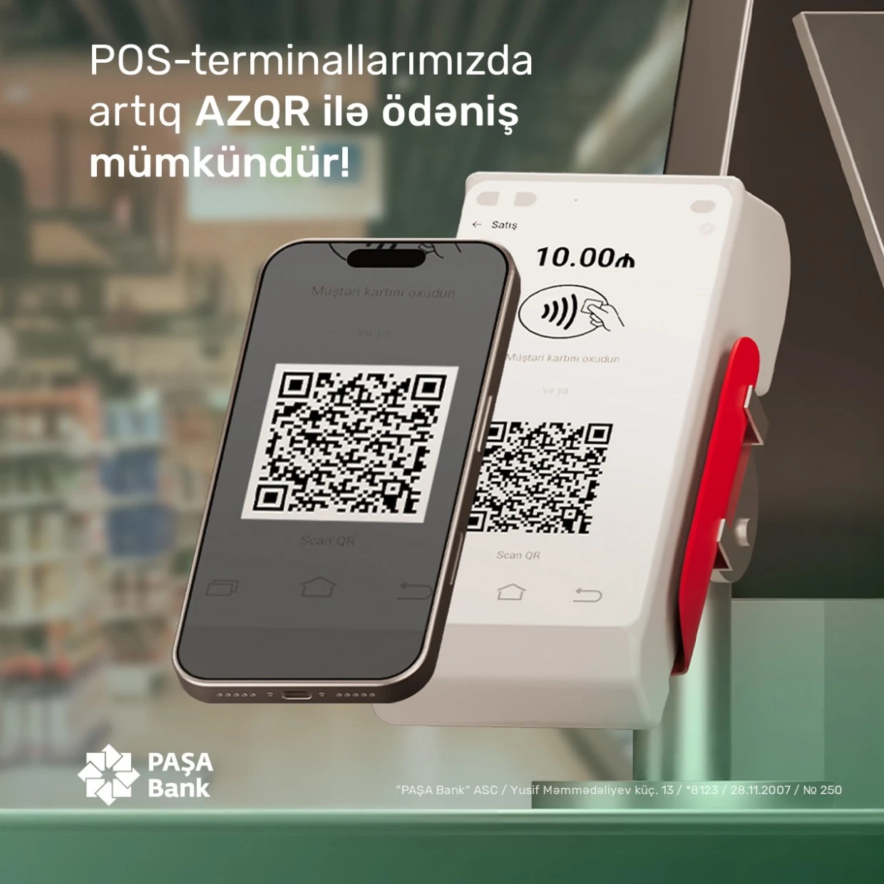 AZQR kod - ödənişlərin ticarət və xidmət obyektlərində fiziki POS-terminallar üzərindən tez, təhlükəsiz və kontaktsız şəkildə həyata keçirilməsini təmin edən vahid QR kod sistemidir. Yeni funksionllıq sayəsində müştərilər müəyyən bankların mobil tətbiqlərindən istifadə edərək ödənişi bir neçə saniyə ərzində tamamlaya bilərlər.