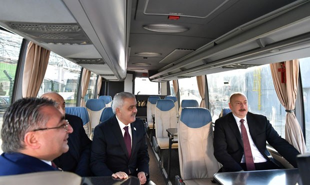 Prezident İlham Əliyev zavodu işə salıb.