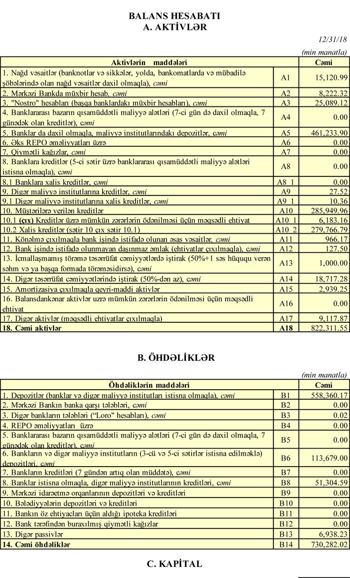 31 Dekabr 2018-ci il tarixində “Azərbaycan Sənaye Bankı” ASC 822 milyon 311 min manat cəmi aktivlərə, 730 milyon 282 min manat cəmi öhdəliklərə və 92 milyon 29 min manat cəmi balans kapitalına malik olub. 31 Dekabr 2017-ci il tarixində “Azərbaycan Sənaye Bankı” ASC 945 milyon 189 min manat cəmi aktivlərə, 945 milyon 189 min manat cəmi öhdəliklərə və 90 milyon 358 min manat cəmi balans kapitalına malik idi. Beləliklə, illik müqayisədə Bankın aktivləri 13% azalıb.