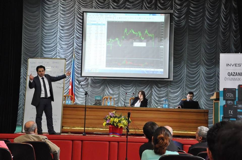 Sonra Rövşən Məmmədov Maliyyə bazarları – Birjalar haqqında, birjanın növləri, birjanın iştirakçıları; Birjada ticarətin motivləri; Maliyyə aktivlərinin alış və satışından mənfəət əldə etmək imkanı; Marjinal ticarət. Kredit çiyni; MetaTrader 4 (ticarət platforması) izahı; Analitik təhlil üsulları; Best İnvestor – yarışması haqqında geniş məlumat verib.