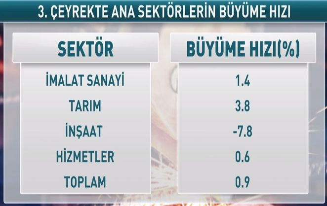 Türkiyə iqtisadiyyatı 2019-cu ilin 2-ci rübündə azalmanın ardından ilin 3-cü rübündə ötən ilin eyni rübü ilə müqayisədə 0.9% artıb.