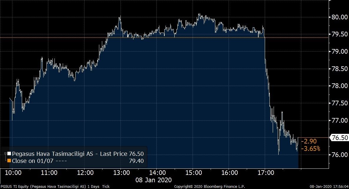 Bu açıqlamanın ardından "Pegasus" haya yolları şirkətinin səhmləri 3,65% ucuzlaşaraq 76.35 TL səviyyəsini görüb.